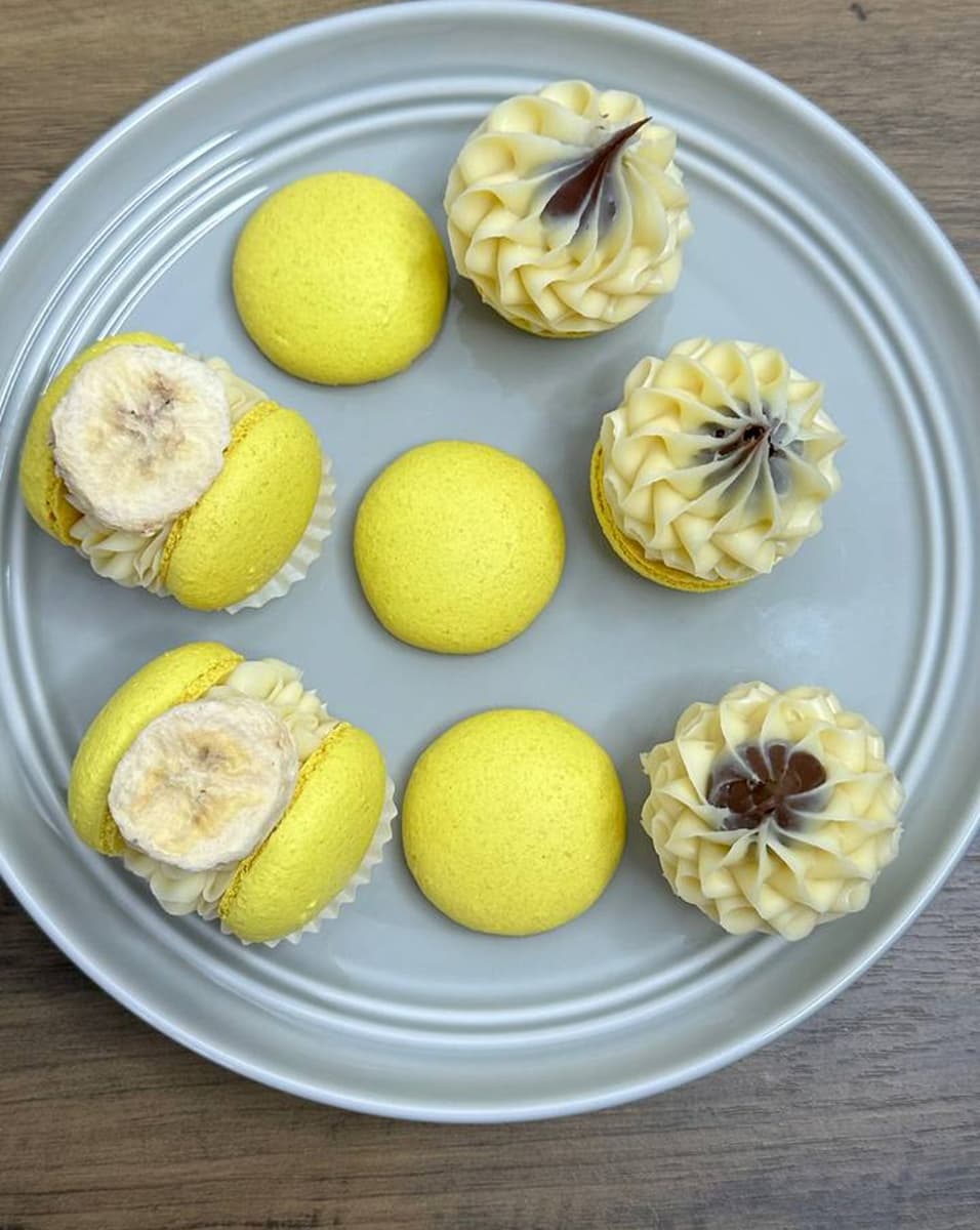 Enjoy the perfect harmony of fruity sweetness and chocolatey richness with our Banana Nutella macaron. The light, crisp yellow shells hold a luscious banana-infused ganache, crafted with premium Callebaut White Chocolate for a velvety smooth texture. At the heart of this indulgence lies a rich Nutella centre, adding a deep, nutty cocoa contrast to the naturally sweet banana flavor. A touch of dried banana on top enhances both the taste and presentation, making this handcrafted treat an irresistible combination of smooth, creamy, and chocolatey goodness. A must-try for banana and Nutella lovers!
