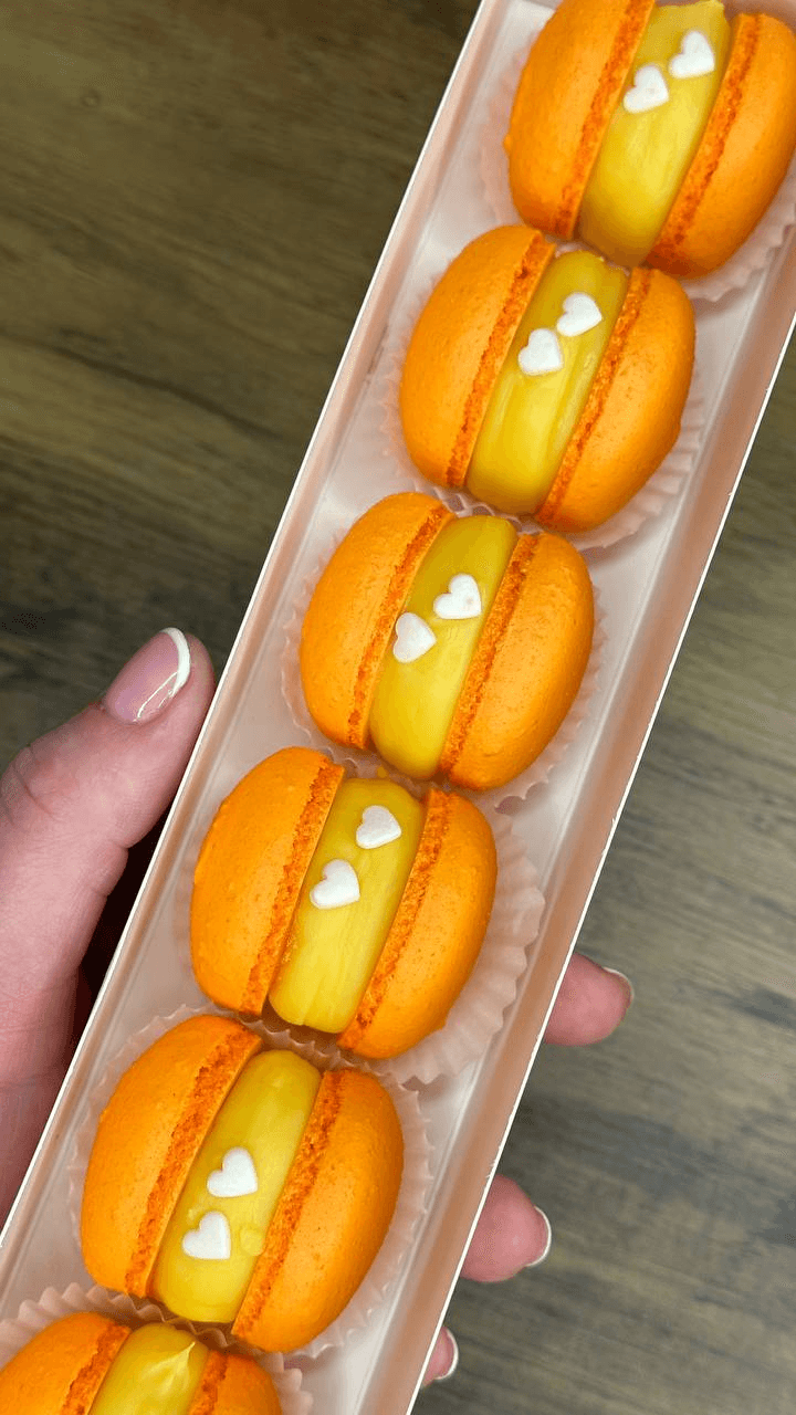 Experience the perfect harmony of tropical flavours with our handcrafted Mango-Passion Fruit macaron. Each bite delivers a delightful contrast between the crisp outer shell and the creamy, citrusy filling.